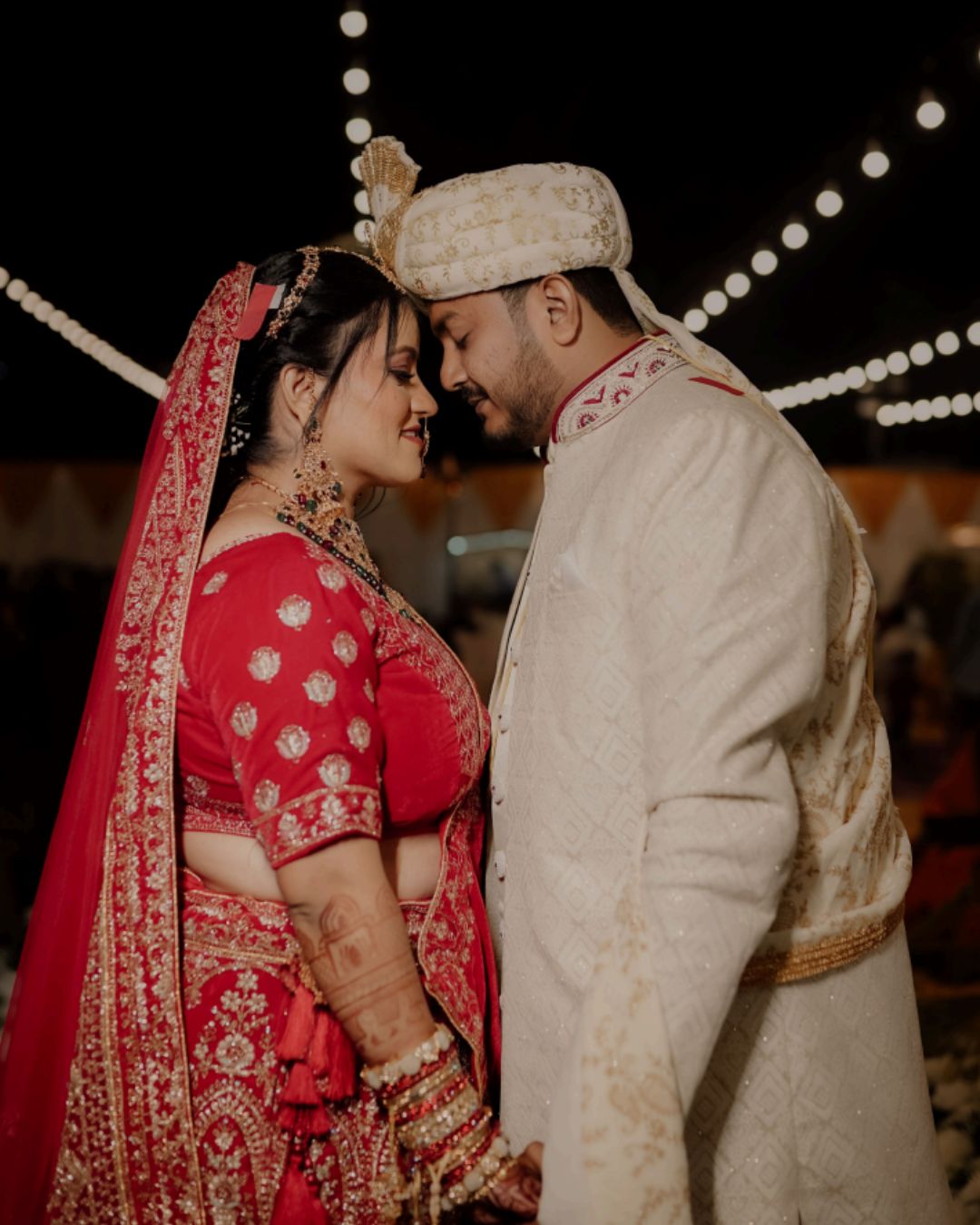 Set beneath warm glowing string lights, this wedding story focused on emotion over extravagance. The close frames, soft bokeh background, and rich traditional colors created a timeless cinematic mood.